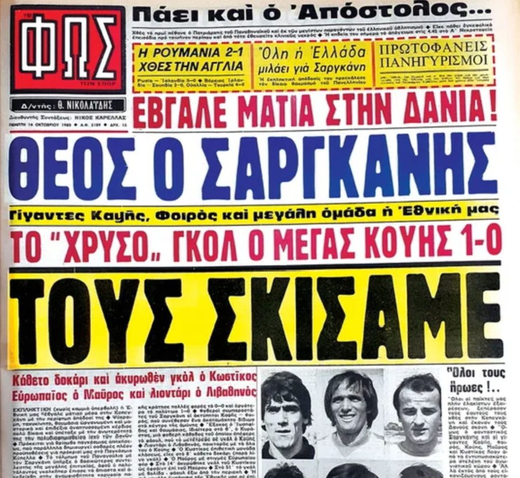 Ο σκόρερ της πρώτης και μέχρι σήμερα μοναδικής εκτός έδρας νίκης της Ελλάδας στη Δανία ήταν ο Ντίνος Κούης στο 50ο λεπτό, ωστόσο ο πρωταγωνιστής του αγώνα ήταν άλλος… Την παράσταση τότε είχε κλέψει ο νεαρός ακόμη Νίκος Σαργκάνης, στο ντεμπούτο του με το εθνόσημο, παίρνοντας μάλιστα εκτάκτως φανέλα βασικού, αφού ήταν να ξεκινήσει βασικός ο Λευτέρης Πουπάκης που όμως τραυματίστηκε!