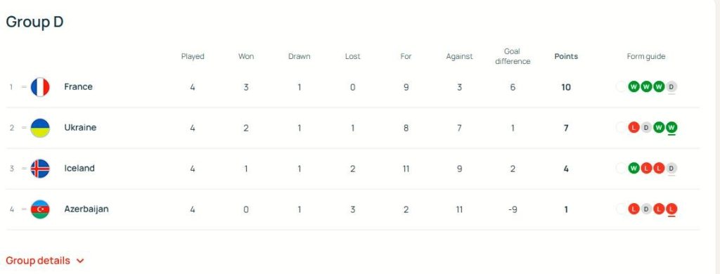 Τέλος στο ματς της ημέρας η Γαλλία ήρθε ισόπαλη με 2-2 στην έδρα της Ισλανδίας. Το 1-0 για την Ισλανδία έκανε ο Πάλσον στο 39ο λεπτό. Στο δεύτερο μέρος η Γαλλία απάντησε με τον Ενκουνκού να σκοράρει στο 63′ μετά από τελική πάσα του Ντίνιε, για να έρθει με γκολ του ο Ματετά στο 68′ για να δώσει προβάδισμα στους Γάλλους. Όμως οι Ισλανδοί κατάφεραν να ισοφαρίσουν σε 2-2 με τον Χλίνσον στο 70ο λεπτό και πήραν τον βαθμό της ισοπαλίας.