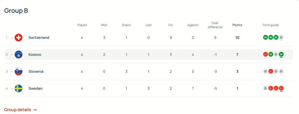 Η Σουηδία έχασε ξανά από το Κόσοβο και αποχαιρέτησε και μαθηματικά τις ελπίδες που είχε για πρόκριση στο Μουντιάλ. το μοναδικό γκολ της αναμέτρησης πέτυχε ο Ασλάνι στο 31ο λεπτό της αναμέτρησης, έπειτα από ασίστ του Χότζα.