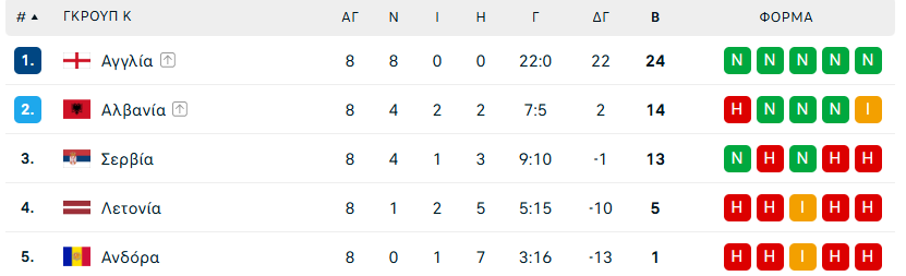 Οι δυο τους βρέθηκαν αντιμέτωπες στα Τίρανα, με τα «τρία λιοντάρια» να επικρατούν με 2-0 χάρη σε δύο γκολ του Κέιν και να γράφουν ιστορία καθώς όχι απλά τελείωσαν με το απόλυτο στον όμιλο, αλλά δεν δέχθηκαν ούτε γκολ έχοντας συντελεστή τερμάτων 22-0. Βασικούς για τους γηπεδούχους ήταν ο Στρακόσα.