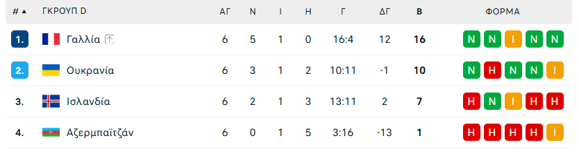 Η τελική βαθμολογία στον 4ο όμιλο: