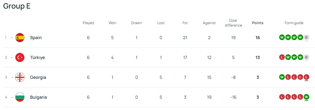Στο άλλο ματς του ομίλου η Βουλγαρία νίκησε με 2-1 τη Γεωργία. Οι γηπεδούχοι βρέθηκαν νωρίς μπροστά με δύο γκολ χάρη στους Ρούσεφ (10′) και Κράστεφ (24′). Το μόνο που κατάφεραν οι φιλοξενούμενοι ήταν να μειώσουν σε 2-1 στο 88′ με τον Λοχοσβίλι.