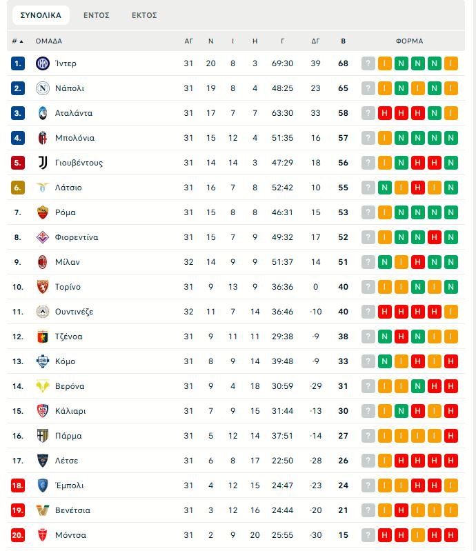 Το πρόγραμμα και τα αποτελέσματα της 32ης αγωνιστικής