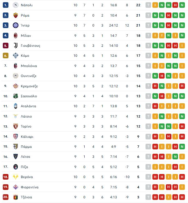 Η βαθμολογία μετά τη νίκη της Ίντερ