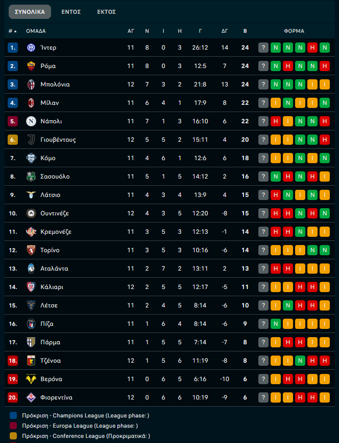 Τα αποτελέσματα και το υπόλοιπο πρόγραμμα της 12ης αγωνιστικής: