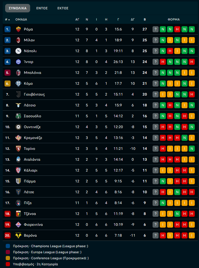 Τα αποτελέσματα και το υπόλοιπο πρόγραμμα της 12ης αγωνιστικής: