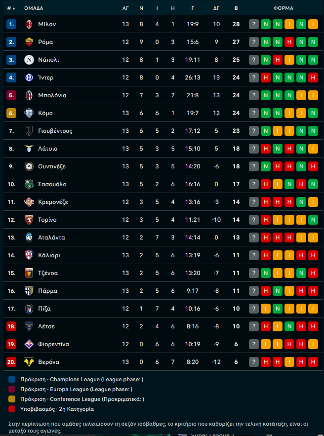 Τα αποτελέσματα και το υπόλοιπο πρόγραμμα της 13ης αγωνιστικής: