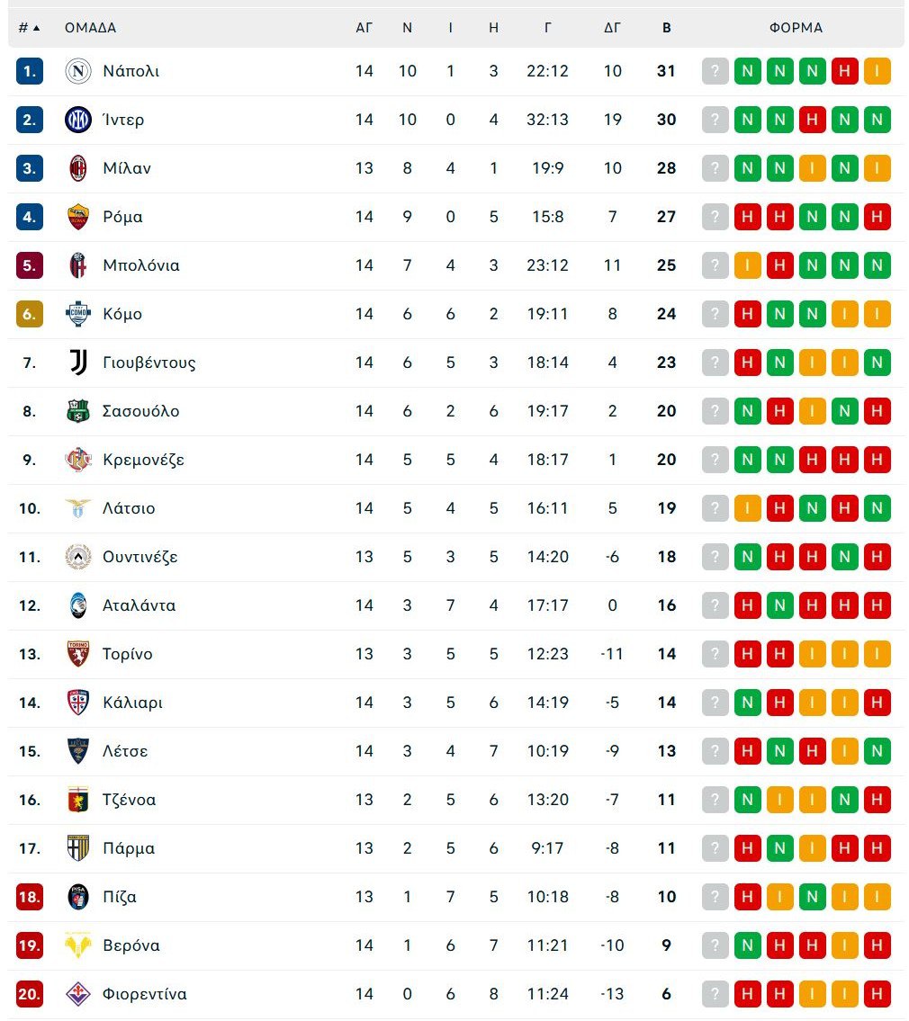 (13′ Βολπάτο, 45’+1′ Μουχαρέμοβιτς, 65′ Κονέ – 9′ Μαντράγκορα)Ίντερ-Κόμο 4-0