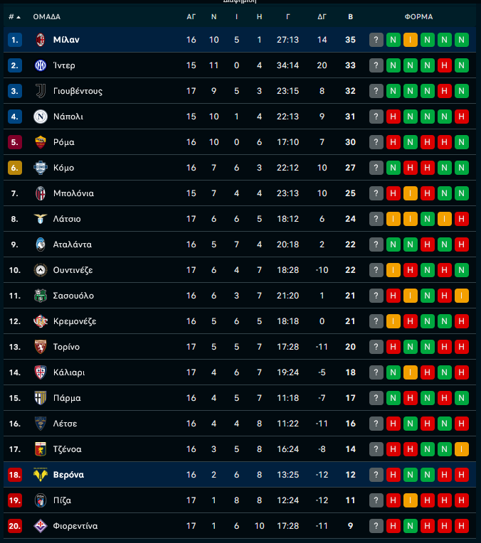 Εύκολο έργο είχε η Μίλαν απέναντι στη Βερόνα της οποίας επικράτησε με 3-0 στο «Σαν Σίρο» για τη 17η αγωνιστική της GBL και ανέβηκε στην κορυφή της βαθμολογίας. Για να παραμείνει εκεί θα πρέπει η Ίντερ να μην περάσει το βράδυ από το Μπέργκαμο όπου θα αντιμετωπίσει την Αταλάντα.