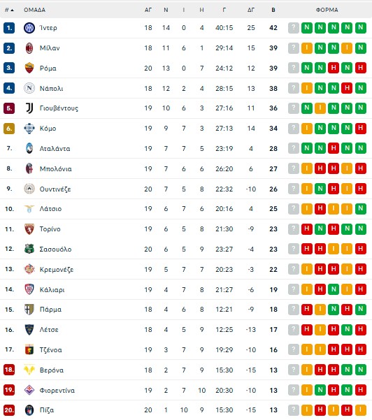 16/01 21:45 Πίζα – Αταλάντα