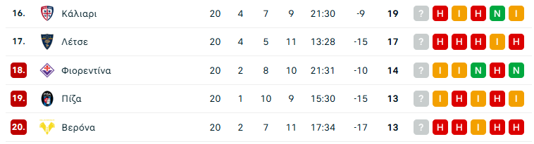 Νωρίτερα, η Μπολόνια πήρε σπουδαίο «διπλό» στη έδρα της Ελλάς Βερόνα και μάλιστα με ανατροπή, με τα γκολ των Ορσολίνι (21′), Όντγκααρντ (29′) και Κάστρο (44΄). Για τους γηπεδούχους σκόραραν οι Όρμπαν και Φρόιλερ (αυτογκόλ 71′).