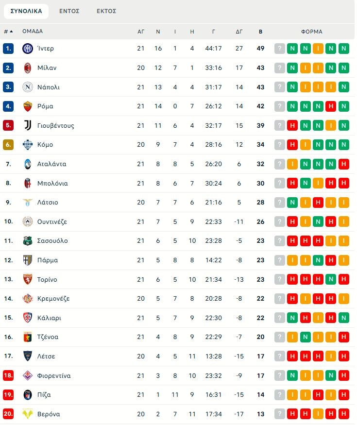 Το πρόγραμμα και τα αποτελέσματα της 21ης αγωνιστικής