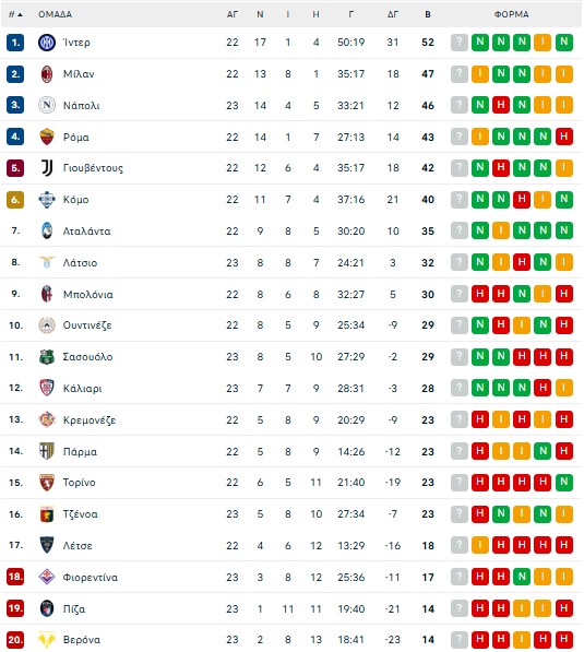 1/2 19:00 Κρεμονέζε – Ίντερ