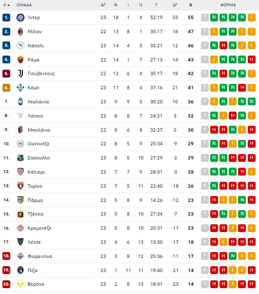 Μετά την αποψινή επικράτηση, το σύνολο του Κίβου συνέχισε το νικηφόρο σερί στο ιταλικό πρωτάθλημα και συνεχίζουν ακάθεκτοι στην πρώτη θέση, έχοντας 55 βαθμούς, με τη Μίλαν να ακολουθεί. Από την άλλη, η Κρεμονέζε, βρίσκεται στην 16η θέση της Serie A, με 23 βαθμούς.