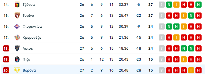 Με αυτή τη νίκη οι «παρτενοπέι» ανέβηκαν στην τρίτη θέση με 53 βαθμούς έπειτα από 27 αγωνιστικές στη Serie A, ενώ η Βερόνα εξακολουθεί να βρίσκεται ουραγός της βαθμολογίας με 15 βαθμούς.