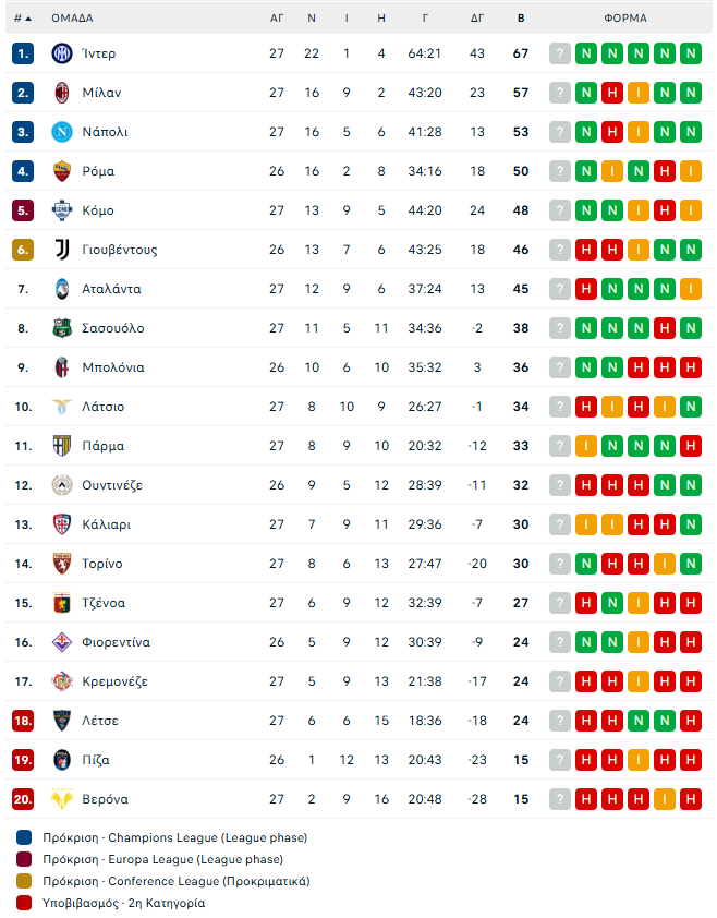 Τα αποτελέσματα και το υπόλοιπο πρόγραμμα της 27ης αγωνιστικής: