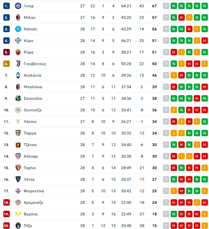 Τα αποτελέσματα και το υπόλοιπο πρόγραμμα της 28ης αγωνιστικής: