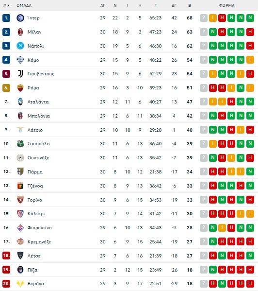 Το πρόγραμμα και τα αποτελέσματα της 30ης αγωνιστικής: