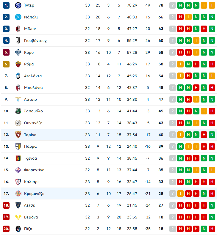 Το πρόγραμμα της 33ης αγωνιστικής στη Serie A: