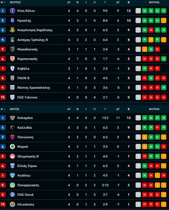 Η Καλαμάτα πήρε τη νίκη με 4-1 απέναντι στον Ολυμπιακό Β’ στον Ρέντη και έκανε το 4/4 στη Super League 2 συνεχίζοντας στην κορυφή του Β΄ομίλου, ενώ ο Ηρακλής επικράτησε με 3-1 του Νέστου Χρυσούπολης και πέτυχε την τρίτη σερί νίκη του, ενώ και η Athens Kallithea νίκησε τα Χανιά εκτός έδρας με 3-1.