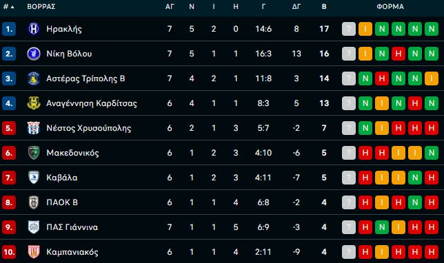 Χωρίς νικητή ολοκληρώθηκε το ντέρμπι του Βορείου Ομίλου ανάμεσα στον Ηρακλή και τη Νίκη Βόλου, με τις δύο ομάδες να μένουν στο 0-0. Μάλιστα, οι φιλοξενούμενοι έπαιζαν με παίκτη λιγότερο από το 30′, ωστόσο κατάφεραν να φύγουν με τον βαθμό της ισοπαλίας, έχοντας σε εξαιρετική μέρα τον Θανάση Γκαραβέλη. Από την άλλη, ο Αστέρας Τρίπολης Β’ επέστρεψε στις νίκες, επικρατώντας με 2-1 του ΠΑΣ Γιάννινα.