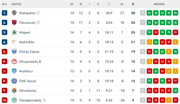 Το πρόγραμμα της 14ης αγωνιστικής στον Β’ Όμιλο: