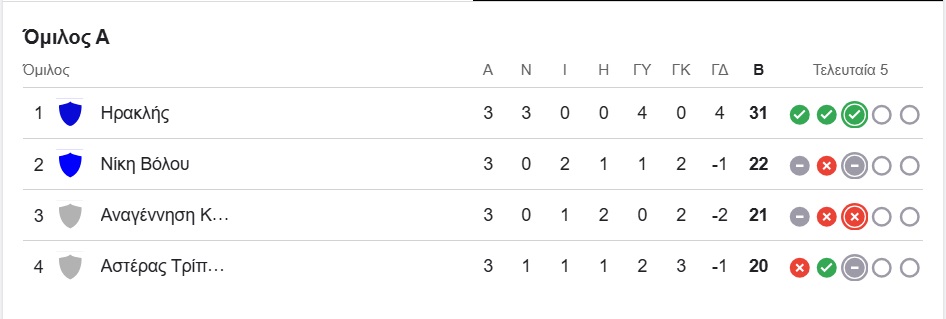 Η βαθμολογία στον Α’ όμιλο των πλέι οφ της Super League 2