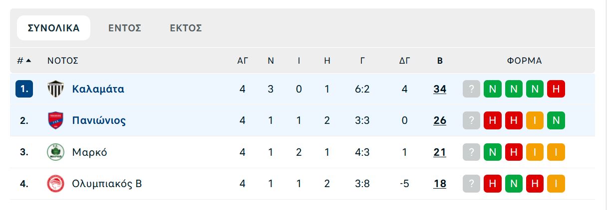Το απόγευμα του Σαββάτου, η Καλαμάτα νίκησε 1-0 τον Πανιώνιο στη Νέα Σμύρνη με γκολ του Μορέιρα στο 38′, στο πλαίσιο της 4ης αγωνιστικής του Νοτίου Ομίλου της Super League 2, έφτασε τις 3 σερί νίκες στα πλέι-οφ και έτσι εξασφάλισε την άνοδό της με δύο ακόμη ματς να απομένουν στο πρόγραμμα.