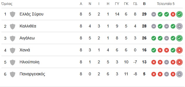Παράλληλα, σημαντικό βήμα παραμονής έκανε η Ελλάδας Σύρου μετά την σπουδαία εκτός έδρας νίκη της με 2-0 επί της Ηλιούπολης. Η ομάδα της Σύρου έφτασε τους 29 βαθμούς και πέρασε στην πρώτη θέση της βαθμολογίας του μίνι πρωταθλήματος.