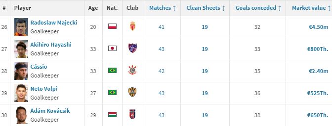 Θα δείτε κορυφαίους γκολκίπερ να είναι πολύ πιο κάτω. Ο Όμπλακ 15ος, ο Κουρτουά 18ος, ο Νόιερ 23ος. Και πάει λέγοντας.