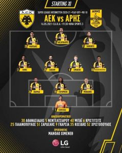 Η ΑΕΚ υποδέχεται στις 19.30 τον Αρη στο ΟΑΚΑ για την τελευταία αγωνιστική των πλέι οφ και της σεζόν και ο Μανόλο Χιμένεθ επιλέγει σύστημα 3-4-3 και τον Μπακάκη στα στόπερ.