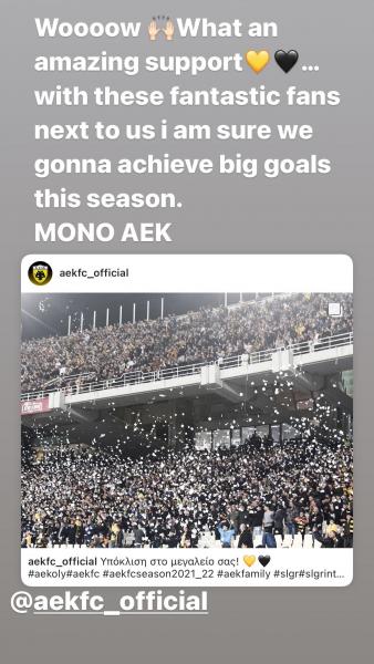 Ο επιθετικός της ΑΕΚ ευχαρίστησε μέσω social media τον κόσμο και έσπευσε μέσω του προσωπικού του λογαριασμού στο Instagram να δώσει το σύνθημα για τη συνέχεια στη φετινή σεζόν.