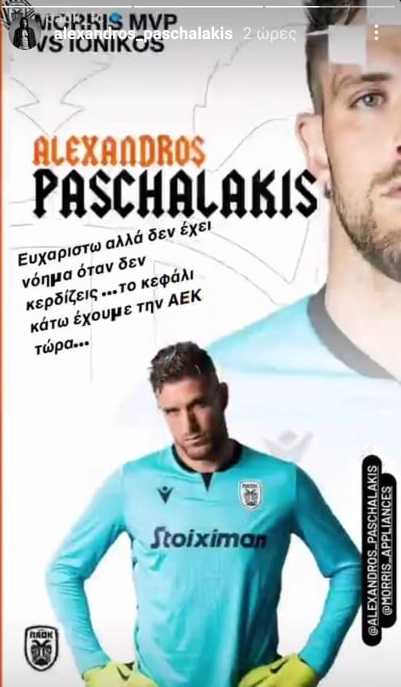 Η ανάρτηση του Αλέξανδρου Πασχαλάκη για την ισοπαλία με τον Ιωνικό, αλλά και για το βραβείο του πολυτιμότερου του ματς στην Τούμπα.
