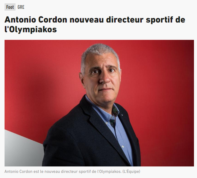 Το άρθρο της γαλλικής «LEQUIPE»: «Ο Αντόνιο Κορδόν νέος αθλητικός διευθυντής του Ολυμπιακού»