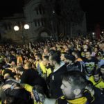 Οι κιτρινόμαυροι οπαδοί φώναζαν συνθήματα παράλληλα και ζήτησαν από τους παίκτες την κατάκτηση και του κυπέλλου κόντρα στον ΠΑΟΚ, προκειμένου να ολοκληρωθεί η φετινή χρονιά με τον ιδανικότερο τρόπο. Μέρες ατελείωτης χαράς λοιπόν, για την ΑΕΚ και τον κόσμο της ο οποίος αδημονεί κιόλας για τον σημερινό αγώνα της μπασκετικής ΑΕΚ με τη Μονακό. Όπως καταλαβαίνει κανείς, αν η Ένωση κατακτήσει το Basketball Champions League, θα υπάρξει αφορμή για νέο πάρτι στη Νέα Φιλαδέλφεια για την κατάκτηση της τρίτης ευρωκούπα στην ιστορία της στο μπάσκετ.