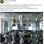 Στην τροπαιοθήκη της ΑΕΚ βρίσκεται από τη Δευτέρα (07/05) το τρόπαιο του πρωταθλήματος 2018! Η κούπα που απονεμήθηκε με κάθε επισημότητα το περασμένο Σάββατο στους Κιτρινόμαυρους, τοποθετήθηκε δίπλα στα υπόλοιπα τρόπαια της ΑΕΚ στον ειδικά διαμορφωμένο χώρο στα γραφεία της ΠΑΕ!