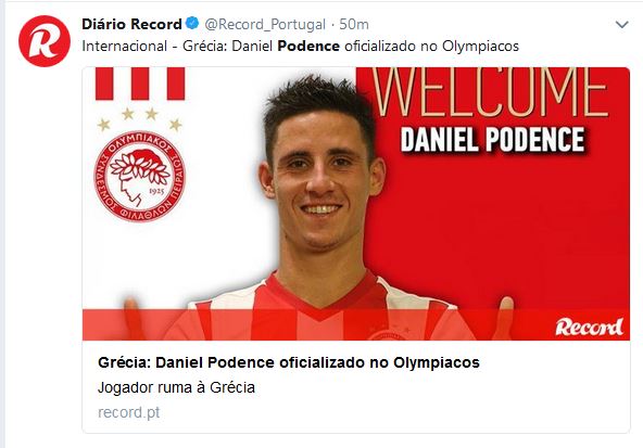 Αίσθηση έχει προκαλέσει στην Ευρώπη και κυρίως στην Πορτογαλία η μεταγραφή του Ντανιέλ Ποντένσε από την Σπόρτινγκ Λισαβόνας στον Ολυμπιακό!