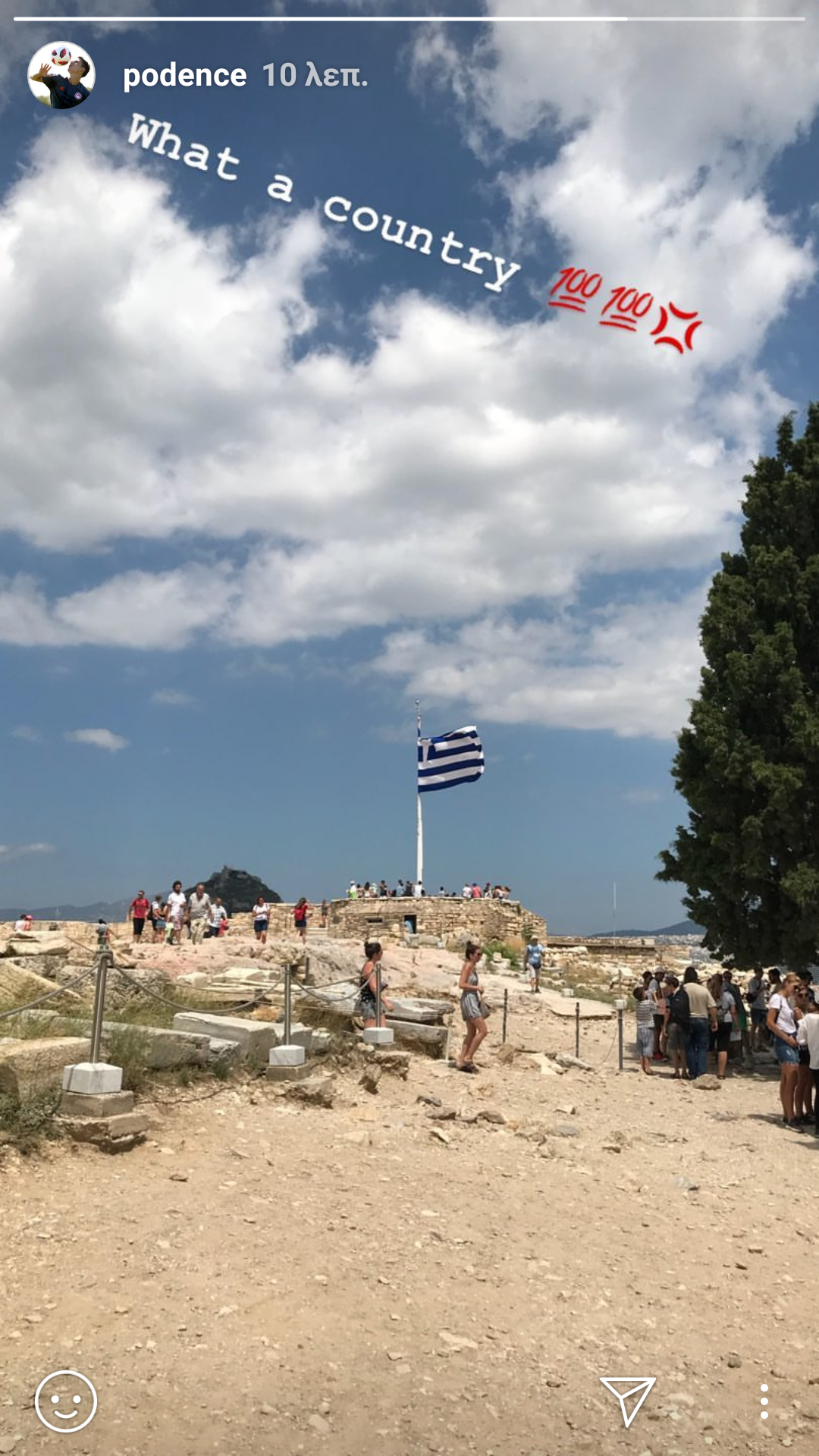 Ο Ντάνιελ Ποντένσε εκμεταλλεύτηκε το γεγονός πως σήμερα οι ερυθρόλευκοι δεν είχαν προπόνηση με τον καλύτερο τρόπο, καθώς αποφάσισε να επισκεφτεί την Ακρόπολη. Ο Πορτογάλος εξτρέμ των Πειραιωτών ανέβασε μια φωτογραφία στον προσωπικό του λογαριασμό στο Instagram από το ιστορικό μνημείο του λεκανοπεδίου με την ελληνική σημαία να κυματίζει κι εκθείασε τη χώρα μας και τις ομορφιές της.