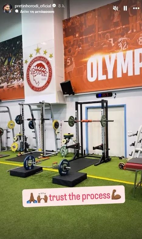 Ο Βραζιλιάνος άσος των Πειραιωτών ανέβασε story στο Instragram από το προπονητικό στον Ρέντη και συγκεκριμένα από το γυμναστήριο της ομάδας, συνοδευόμενο από την ατάκα «trust the process», συνεχίζοντας το ατομικό πρόγραμμά του για να είναι διαθέσιμος ξανά το συντομότερο.