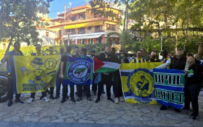 Πριν από την αναμέτρηση οι φίλοι του Λεβαδειακού, υποδέχθηκαν τους οπαδούς του Παναιτωλικού με μπύρες και τους πήραν μαζί τους στο δρόμο για το γήπεδο στο οποίο έφτασαν παρέα.
