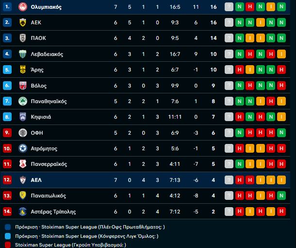 Ο Ολυμπιακός έφτασε τους 16 βαθμούς και ανέβηκε στην κορυφή της βαθμολογίας, περιμένοντας το αυριανό ντέρμπι ανάμεσα σε ΑΕΚ και ΠΑΟΚ στην OPAP Arena. Σήμερα (18/10) έχει ακόμα δύο αναμετρήσεις με τον Ατρόμητο να υποδέχεται τον Λεβαδειακό στις 19.30 και τον Πανιατωλικό να υποδέχεται τον ΟΦΗ στο Αγρίνιο στις 20.00.