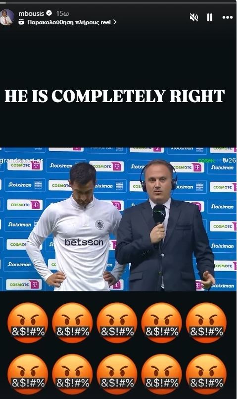 Ο Πρόεδρος της ΠΑΕ ΟΦΗ, Μιχάλης Μπούσης υποστήριξε τον αρχηγό της ομάδας με story του στο Instagram, το οποίο συνόδευσε με την λεζάντα «Έχει απόλυτο δίκιο».