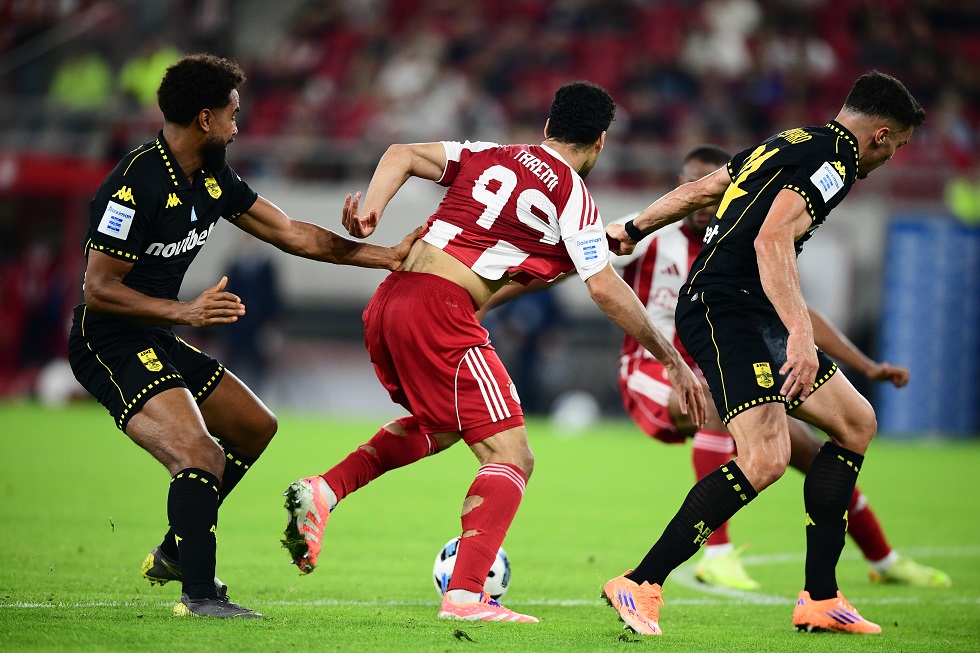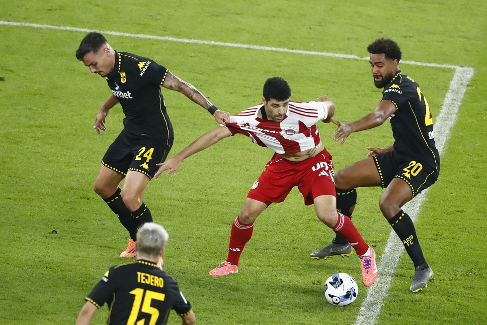 Ζίμπερτ και VAR έδειξαν «παίζεται» σε παρατεταγμένο τράβηγμα φανέλας του Αλβάρο στον Μέχντι Ταρέμι, κλείνοντας τα μάτια σε καταφανέστατη περίπτωση πέναλτι που δεν δόθηκε υπέρ του Ολυμπιακού
