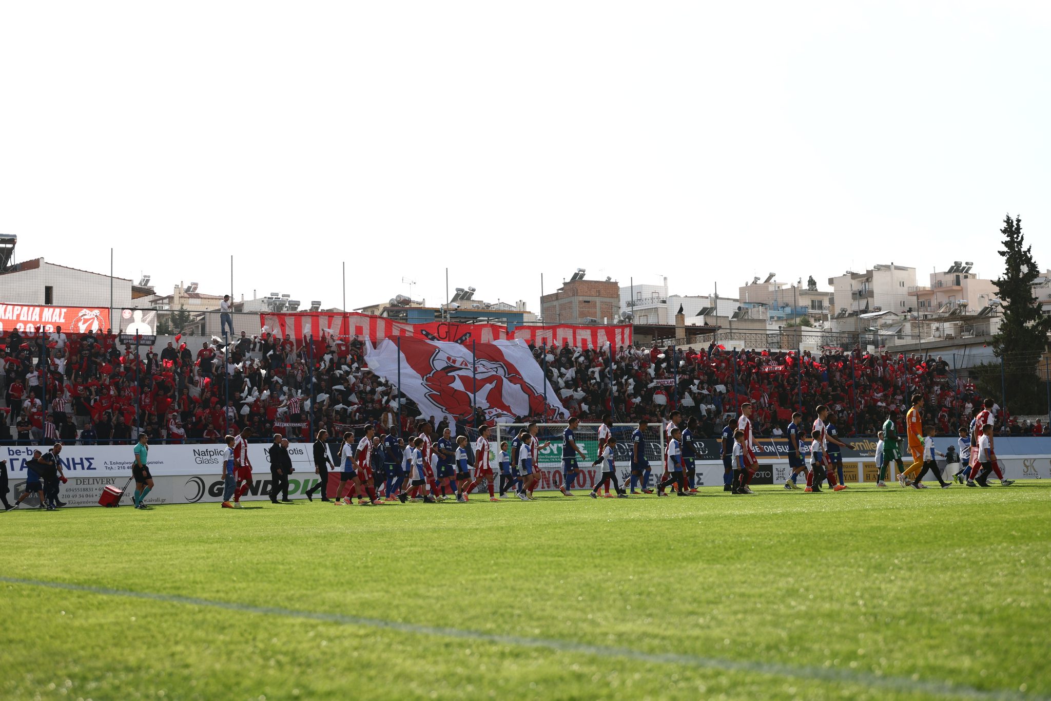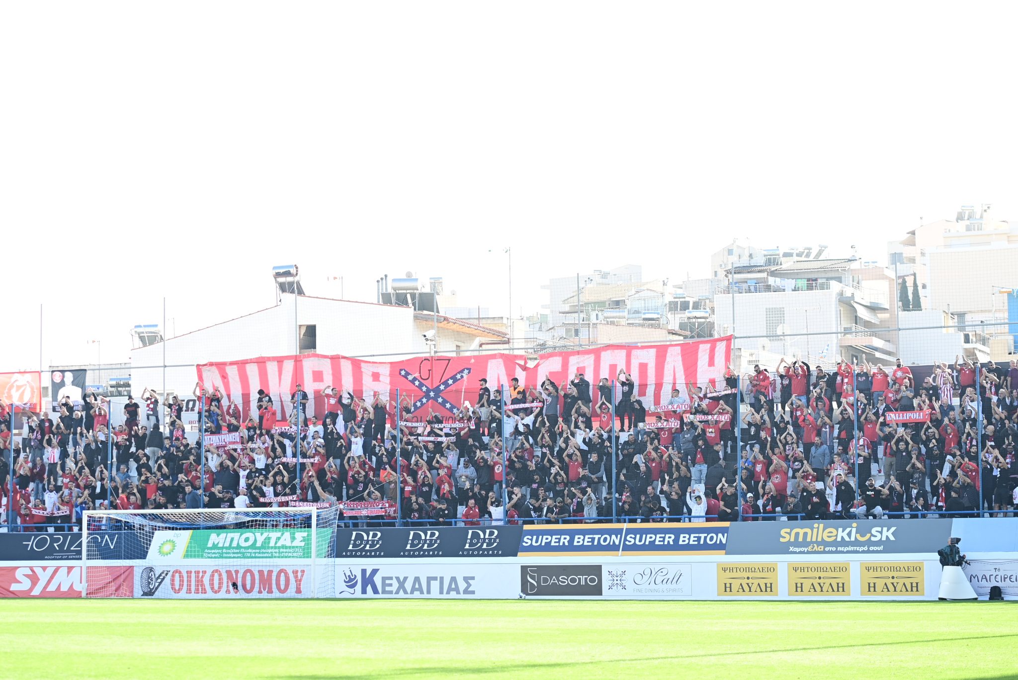 Οι ερυθρόλευκοι έχουν σε ακόμη ένα παιχνίδι τη στήριξη του κόσμου τους στο ματς με τους νεοφώτιστους, αφού οι οπαδοί των Πειραιωτών έχουν δημιουργήσει άλλη μια φορά καταπληκτική ατμόσφαιρα.