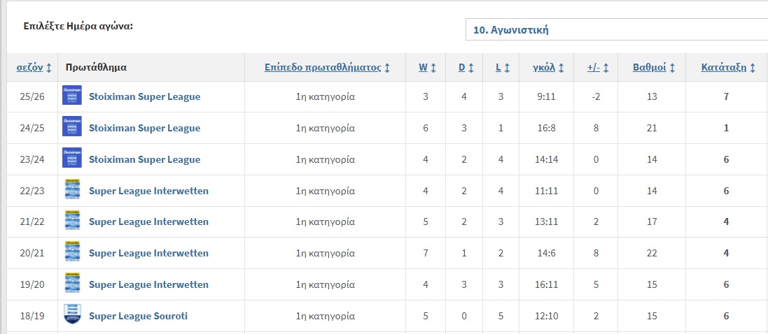 Άρης: Οι βαθμολογικές του θέσεις σε κάθε πρωτάθλημα μετά τις πρώτες 10 αγωνιστικές, από όταν επέστρεψε στη Super League από τη σεζόν ’18-’19
