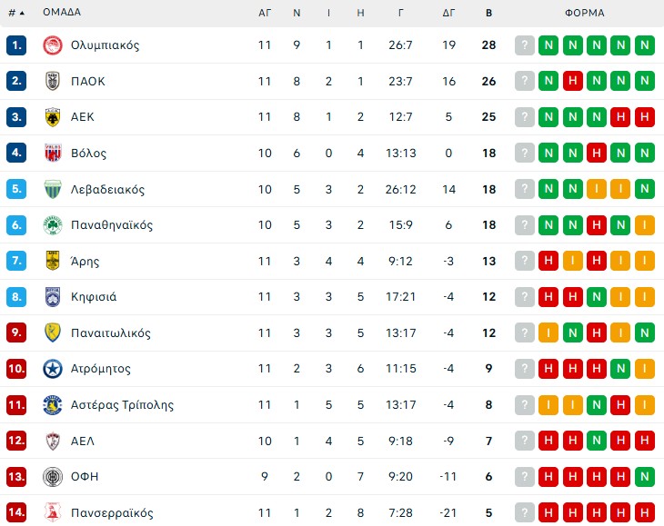 Το πρόγραμμα και τα αποτελέσματα της 11ης αγωνιστικής: