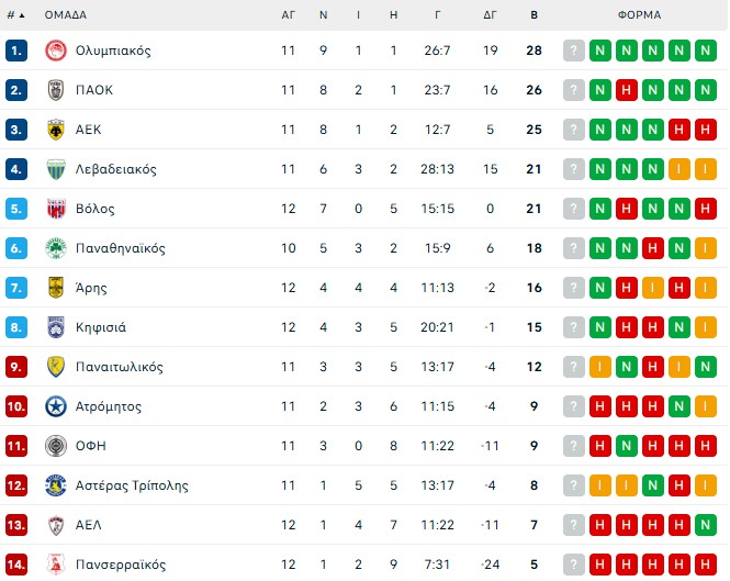 Τα αποτελέσματα και το πρόγραμμα της 12ης αγωνιστικής: