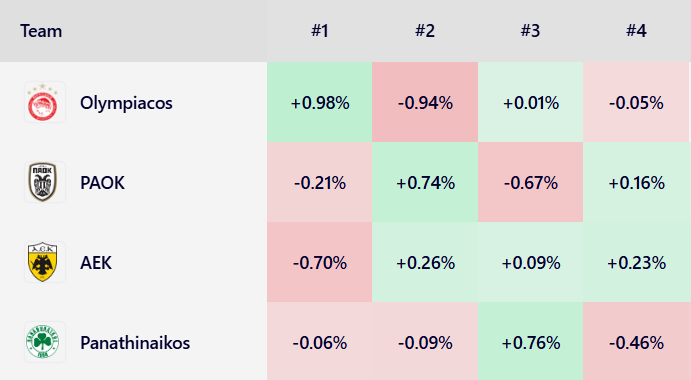 Αναλυτικά οι πιθανότητες για τις θέσεις 1-4 της Superleague