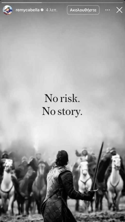 Λίγη ώρα αργότερα ο έμπειρος μεσοεπιθετικός έκανε μία ιδιαίτερη ανάρτηση μέσω του προσωπικού του λογαριασμού στο Instagram. Συγκεκριμένα, στο story που δημοσίευσε πριν από λίγο ο Καμπελά αναφέρει τα εξής: «Όχι ρίσκο, όχι ιστορία», ανέφερε η φωτογραφία που κοινοποίησε ο Καμπελά, με έναν πολεμιστή στη μάχη.