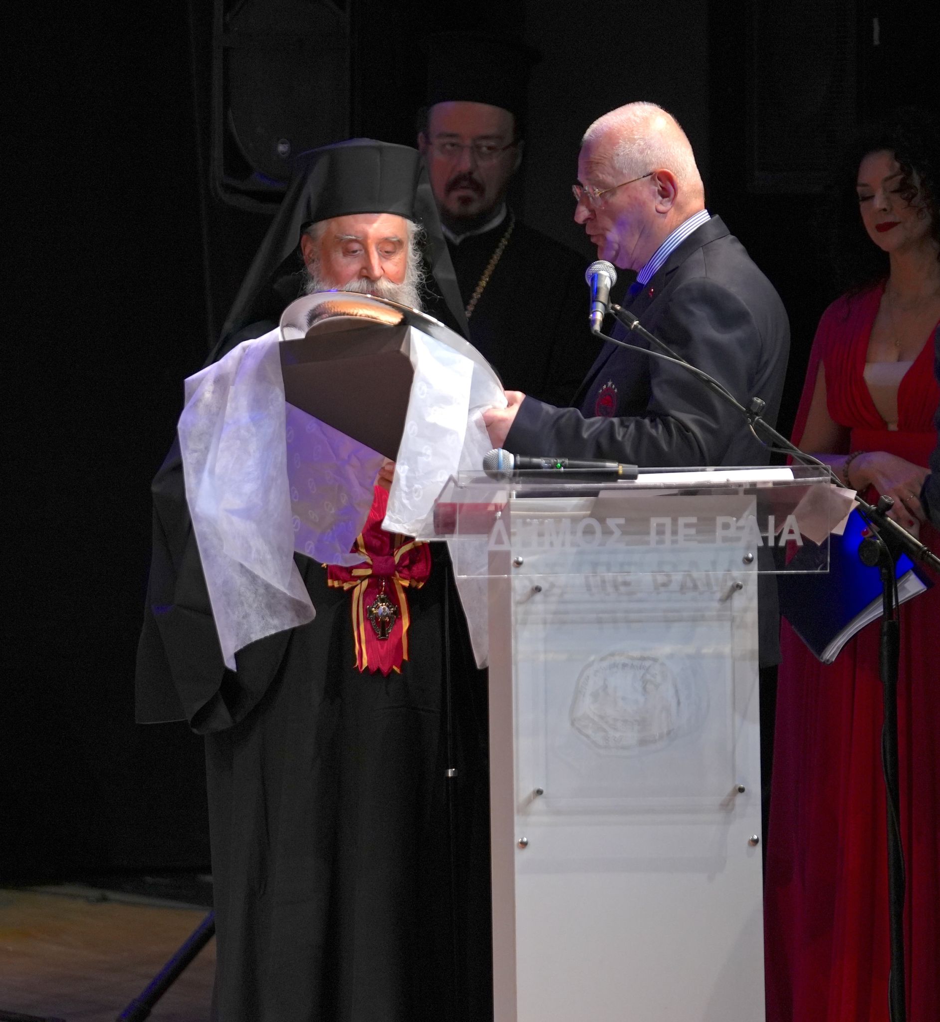 Από την πλευρά του ο κ. Σεραφείμ, αφού πρόσφερε στην κυρία Κουτσαυτάκη και στον κ. Βασιλειάδη εικόνες της Γεννήσεως του Χριστού και έναν ασημένιο δίσκο στον οποίο αναγραφόταν “100 χρόνια Θρύλος, 100 χρόνια Ολυμπιακός, μετ’ ευχών και αγάπης ο Μητροπολίτης Πειραιώς Σεραφείμ”, έκανε λόγο για αναγνώριση της αγάπης και της διαχρονικής προσφοράς του Ολυμπιακού στην Μητρόπολη και στον Πειραιά: